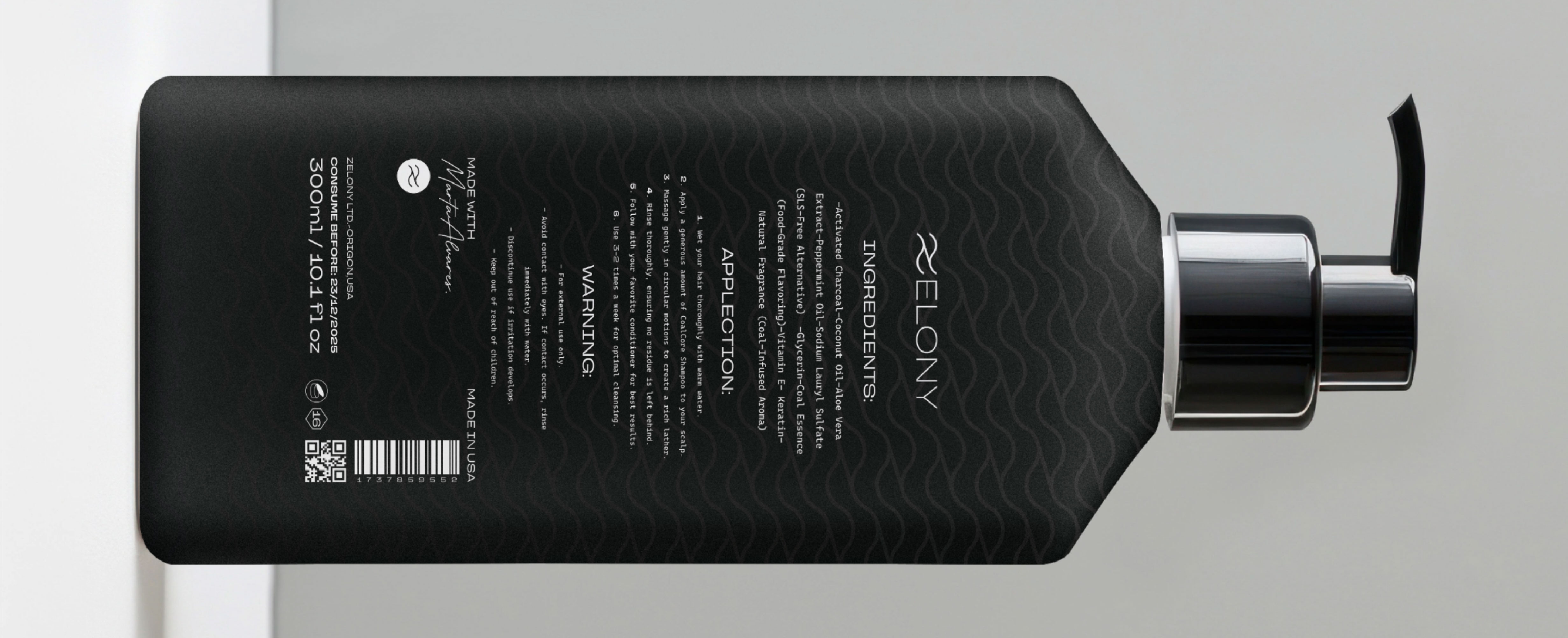 Minimalist design and flowing wave motifs symbolize purity, balance, and nature. The black palette conveys exclusivity, while refined typography underscores sophistication, aligning with Zelony’s eco-friendly yet premium brand values.